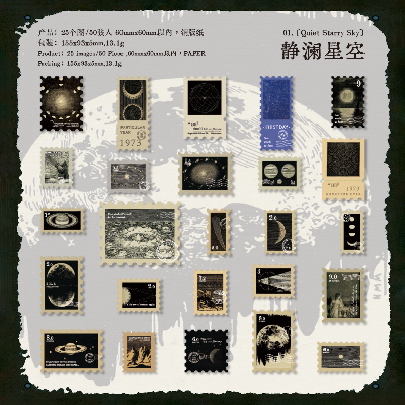 50Pcs/Pcak Vintage Stamps Themed Cardstock Stickers