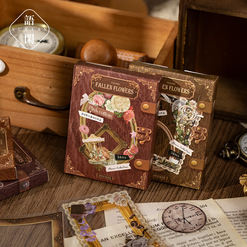 54pcs/Pack Vintage Floral Frame Theme PET Stickers