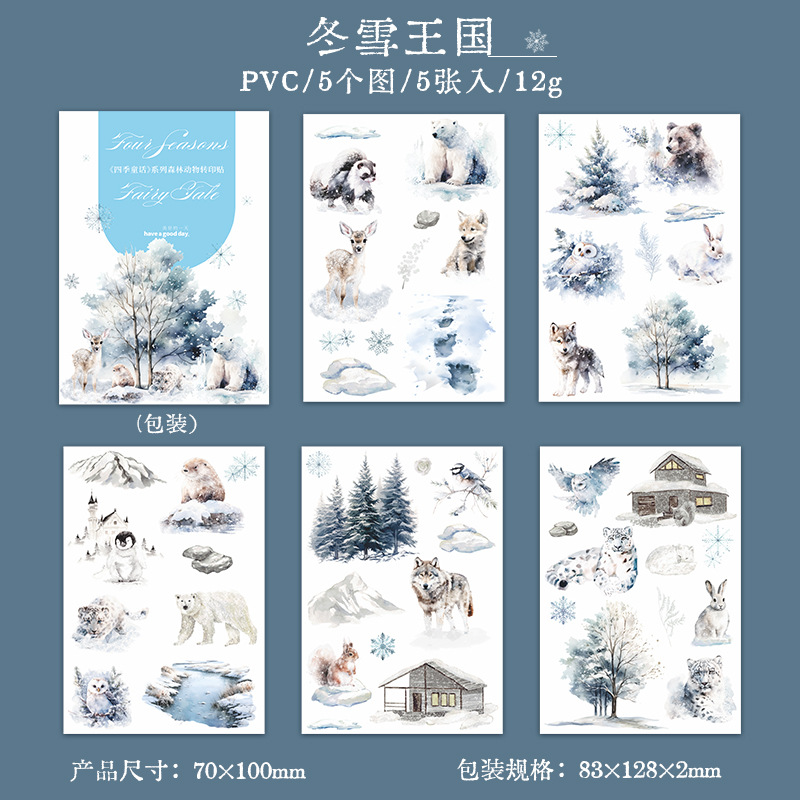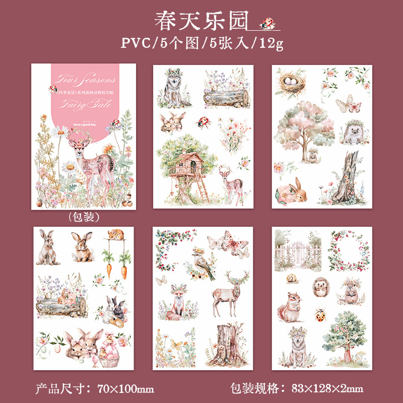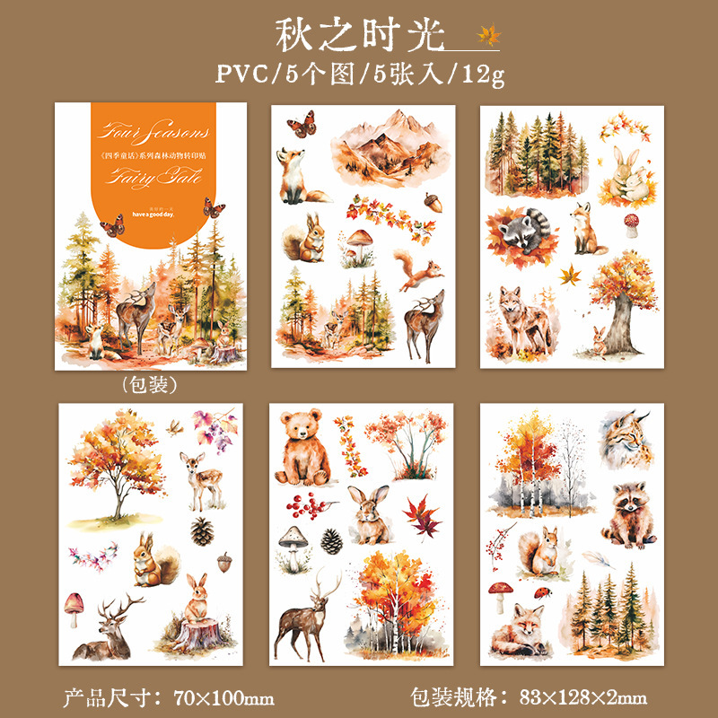 5Pcs/Pack Four Seasons Forest Animals Transfer Stickers