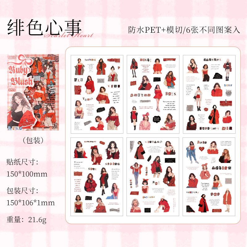 6Sheet/Pack Girls Theme PET Stickers
