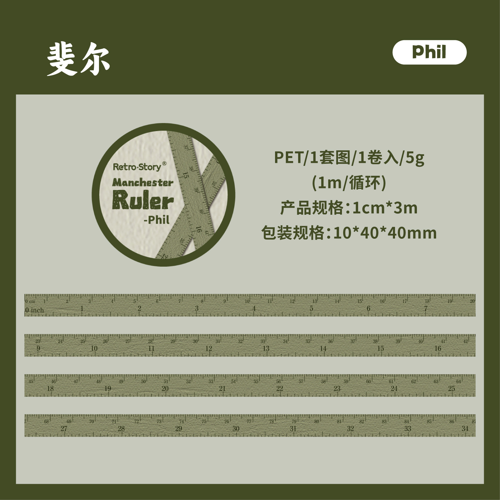 Retro ruler-themed Washi Tape 0.39*118.11 inch