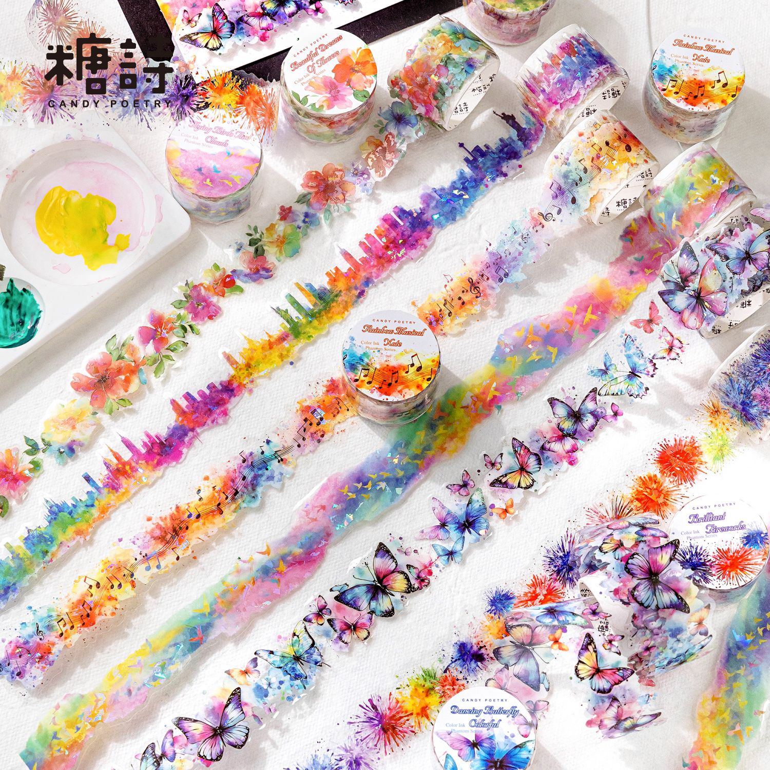Watercolor butterfly city music elements PET tape 1.18 * 78.74 inches
