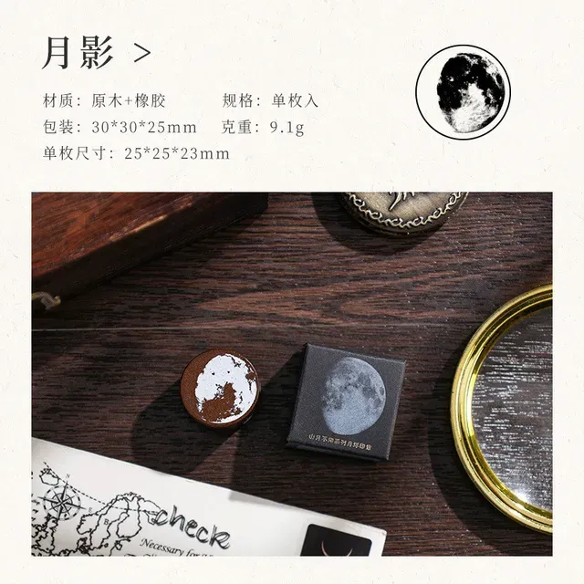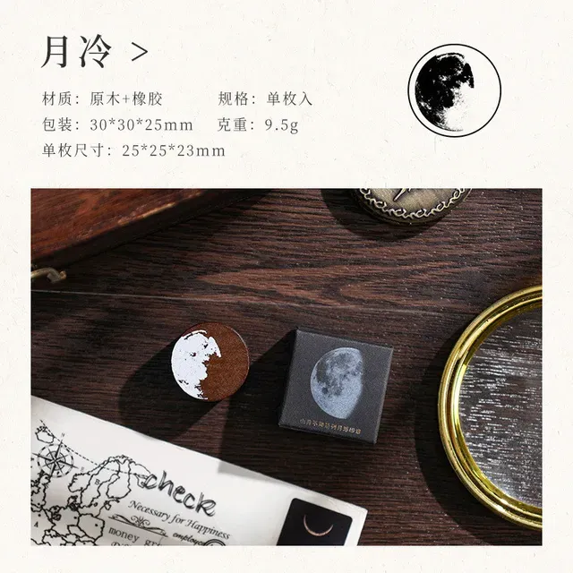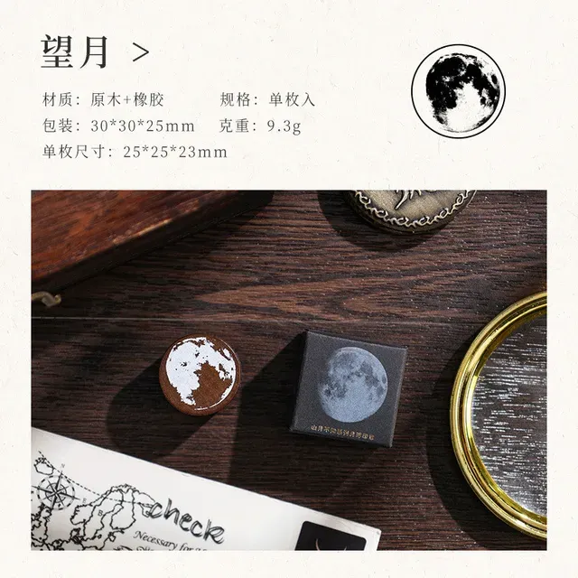 Wooden Moon Phase Rubber Stamp for DIY Craft Journal