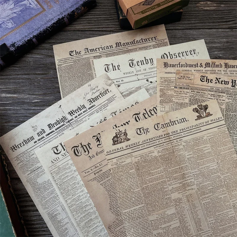 8 Sheets Of A5 Vintage Newspaper Scrapbook Material Paper