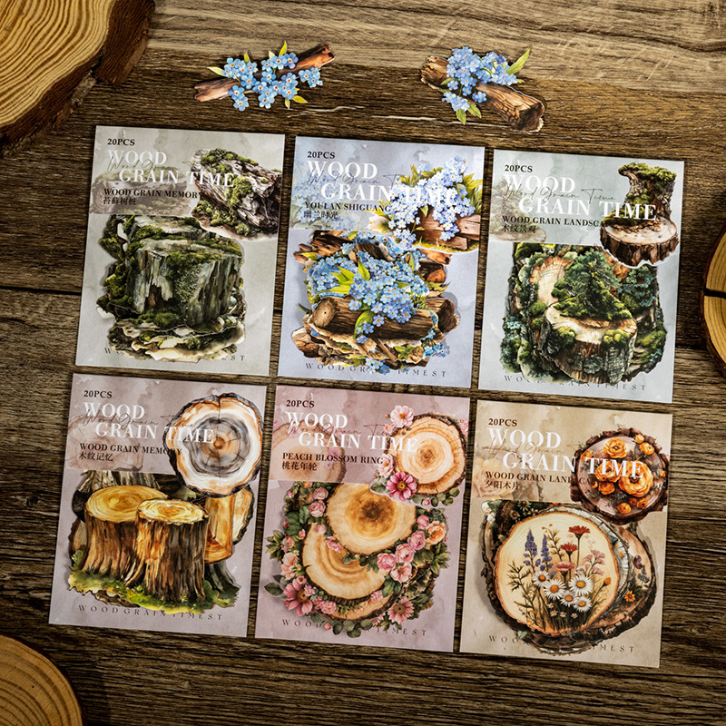 20Pcs/Pack Trees Wood Grain Cards Stickers