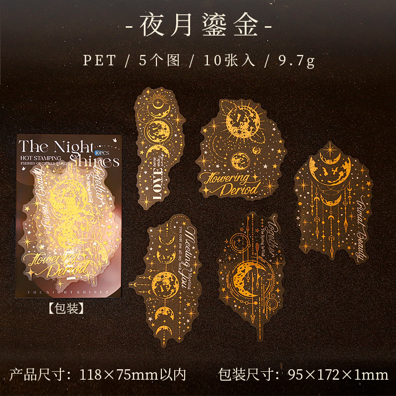 10Pcs/Pack Gold Stamping Snowflake Moon Flower Elements PET Stickers