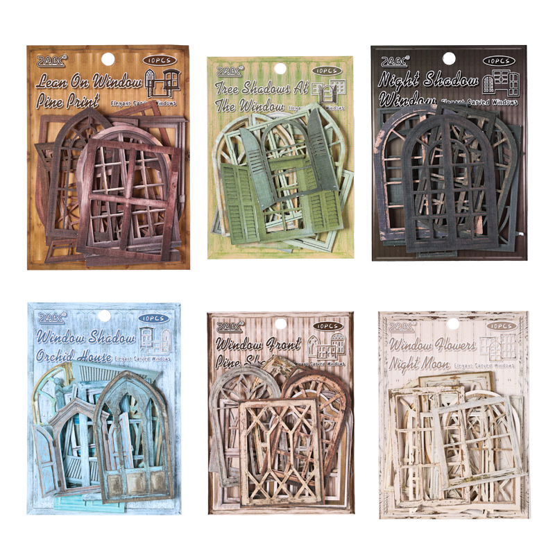 10Pcs/Pack Retro Door and Window Theme Hollow Material Paper
