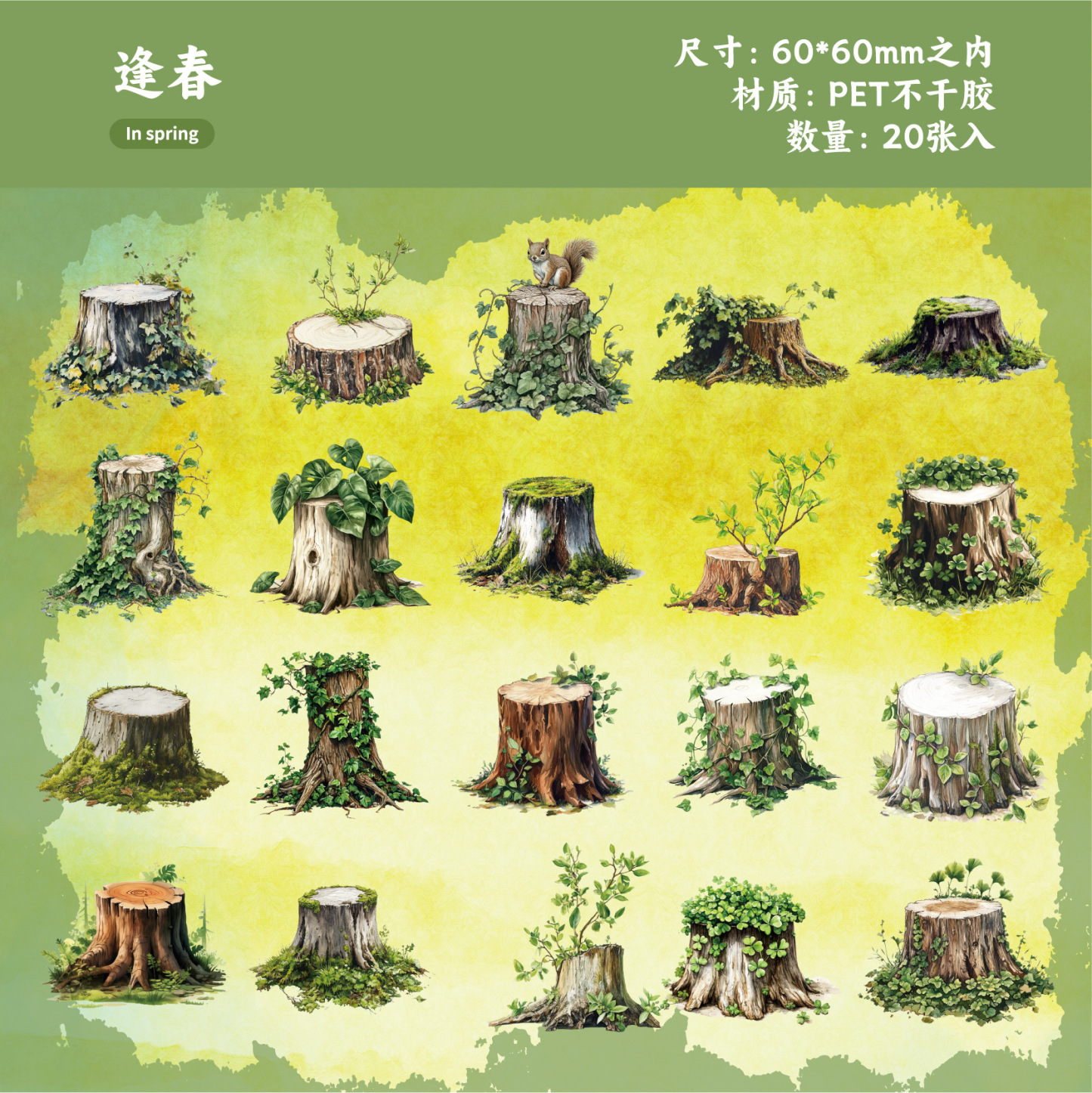 15Pcs/Pack Retro Wood Stake Theme PET Stickers