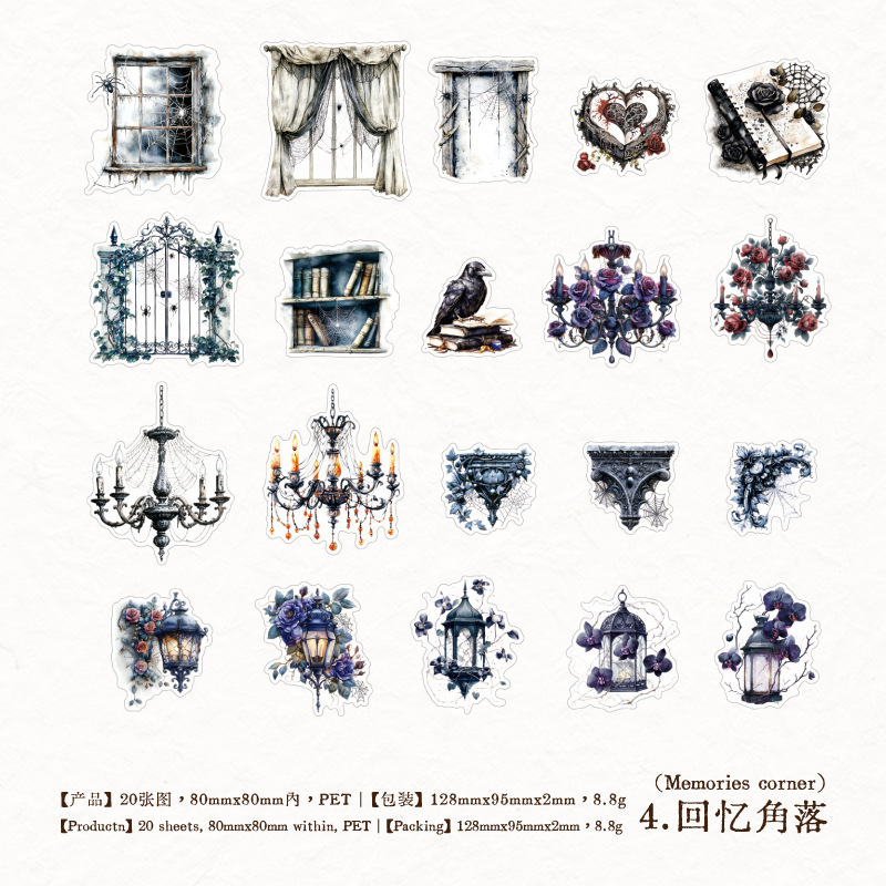 20pcs/pack Dark Gothic Elements PET Stickers