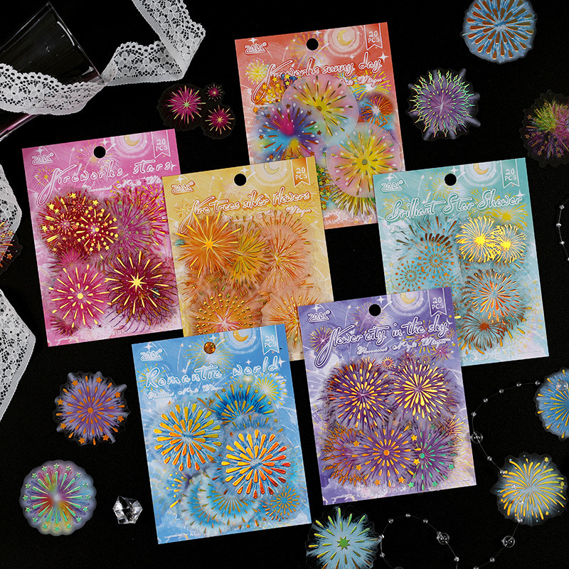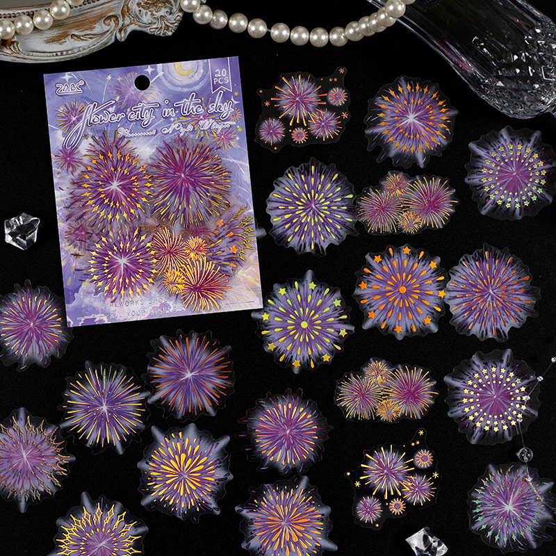 20Pcs/Pack Fireworks Theme PET Stickers