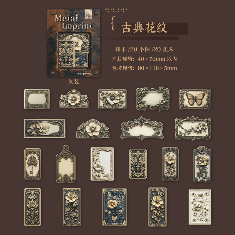20pcs/Pack Vintage Embossed Metal Theme Cardstock Stickers