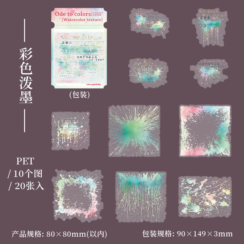 20pcs/Pack Watercolor Texture Themed PET Stickers