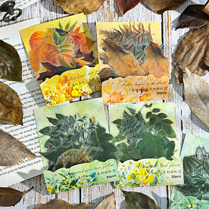 30Pcs/Pack Fallen Leaves Plant PET Stickers