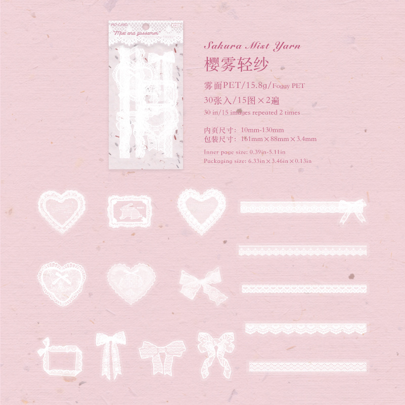 30Pcs/Pack Vintage Lace Element PET Stickers