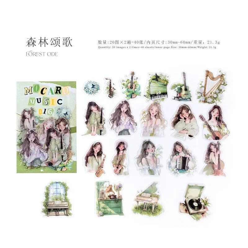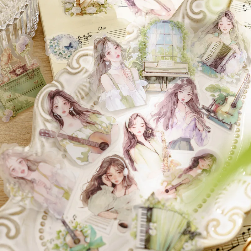 40pcs/1lot Musical Woman's PET Sticker