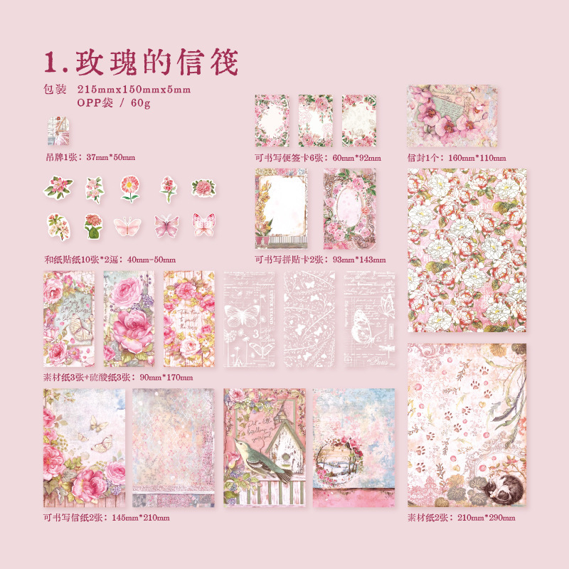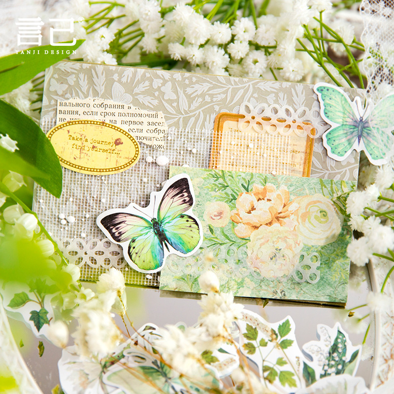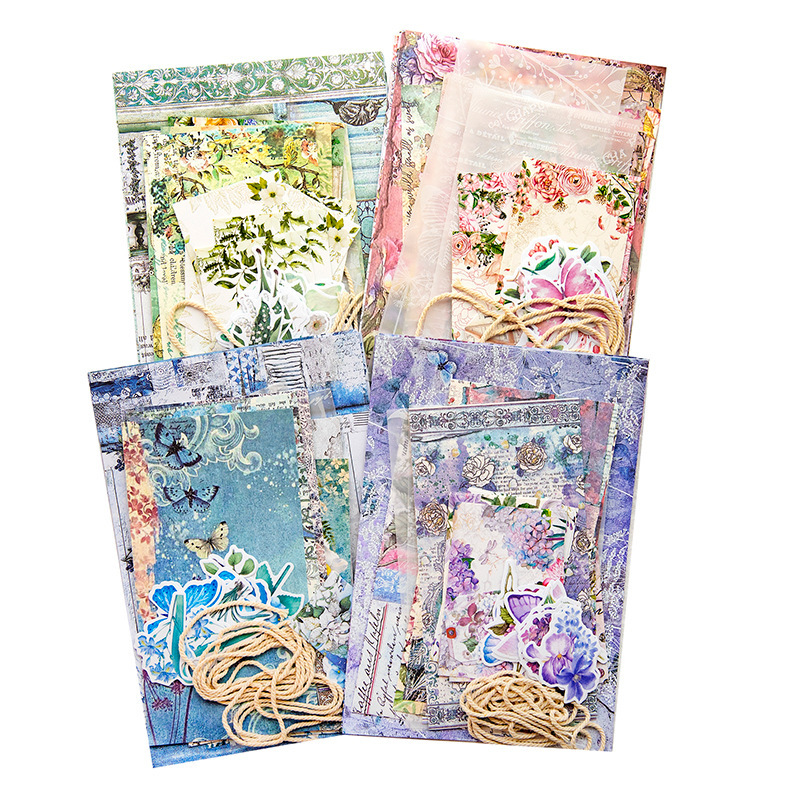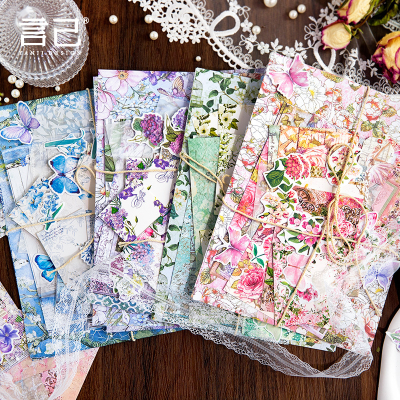 40Pcs Vintage Flower Butterfly Mixed Material Material Paper