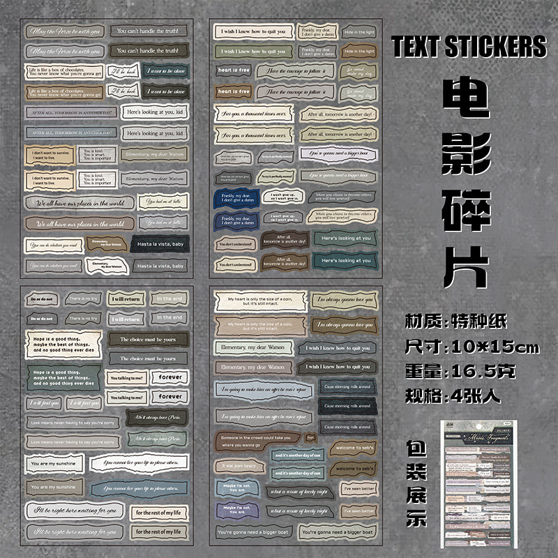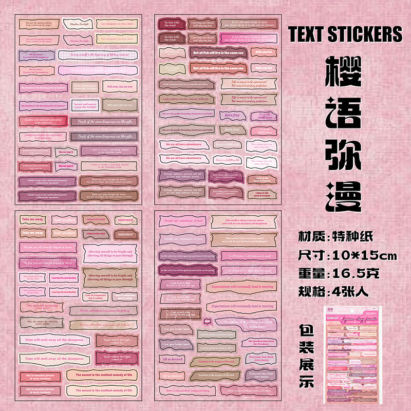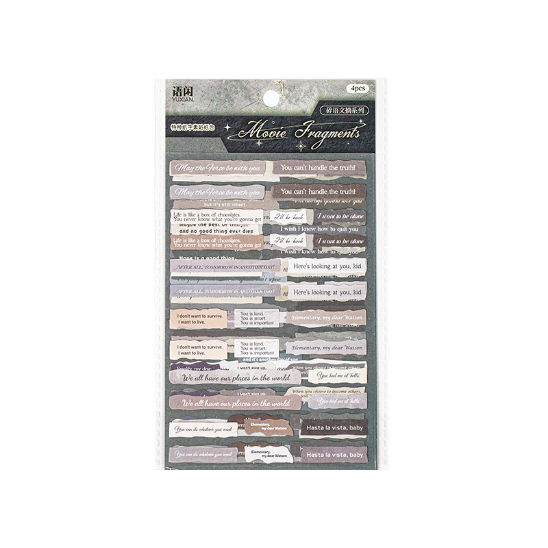 4Pcs/Pack Phrase Text Theme PET Stickers