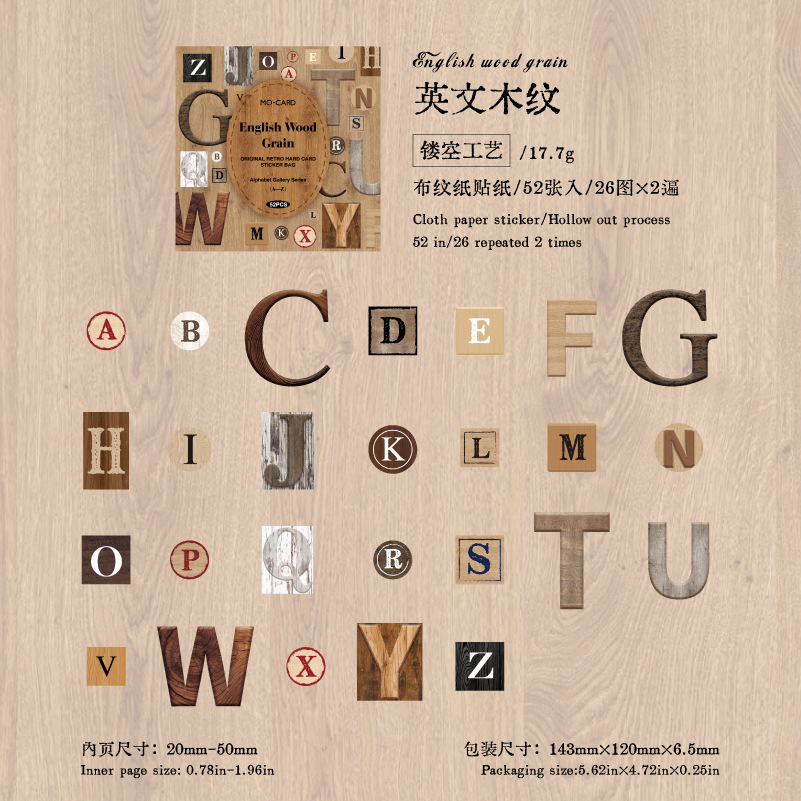 52Pcs/Pack English Themed Card Stickers