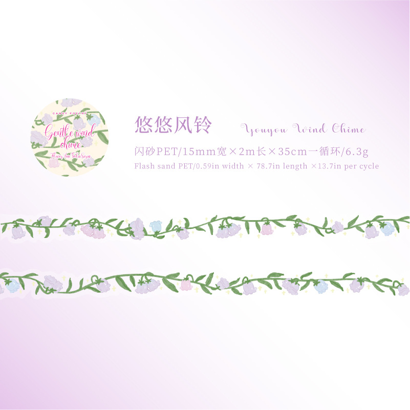 Floral vine themed PET tape, 0.59 x 78.74 inches